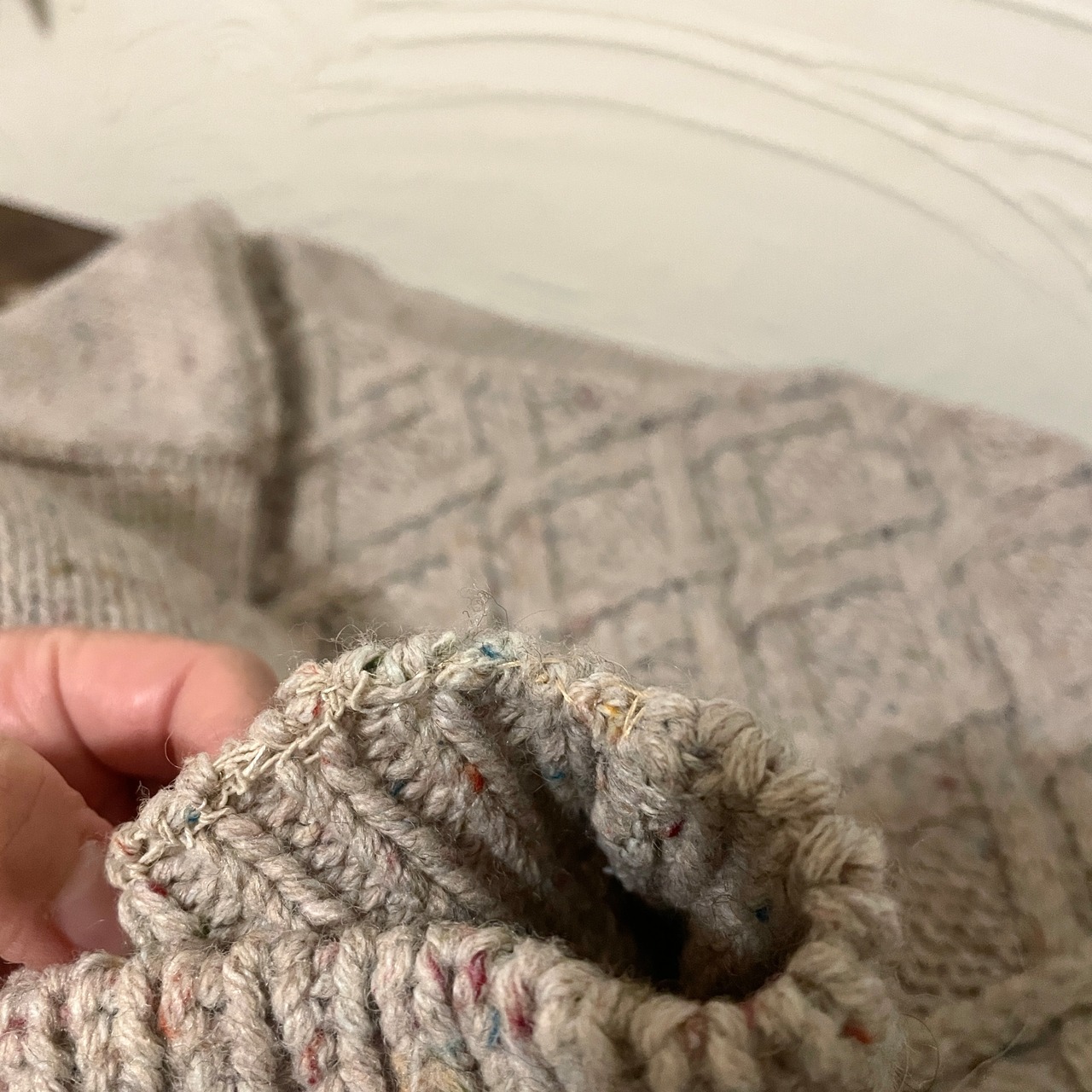 ボディはゆったりとしたシルエットですがハイネック部分はしっかりとしていて、そのバランスも面白いニットです。